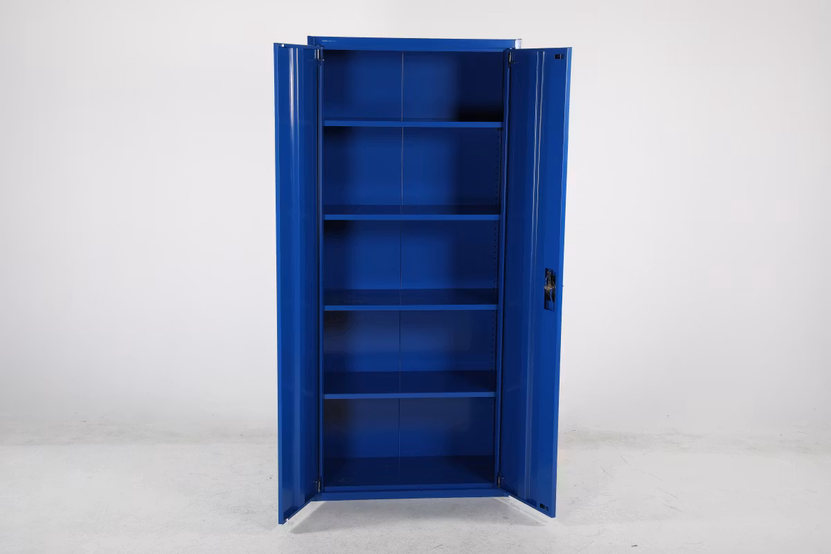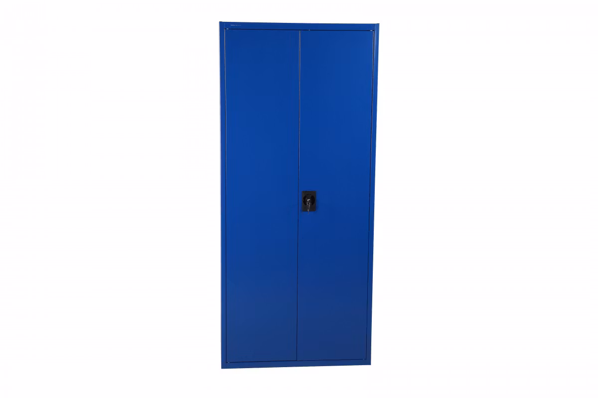 Stabilt omonterat stålskåp. Monteras enkelt utan skruvar och verktyg genom en smart konstruktion.