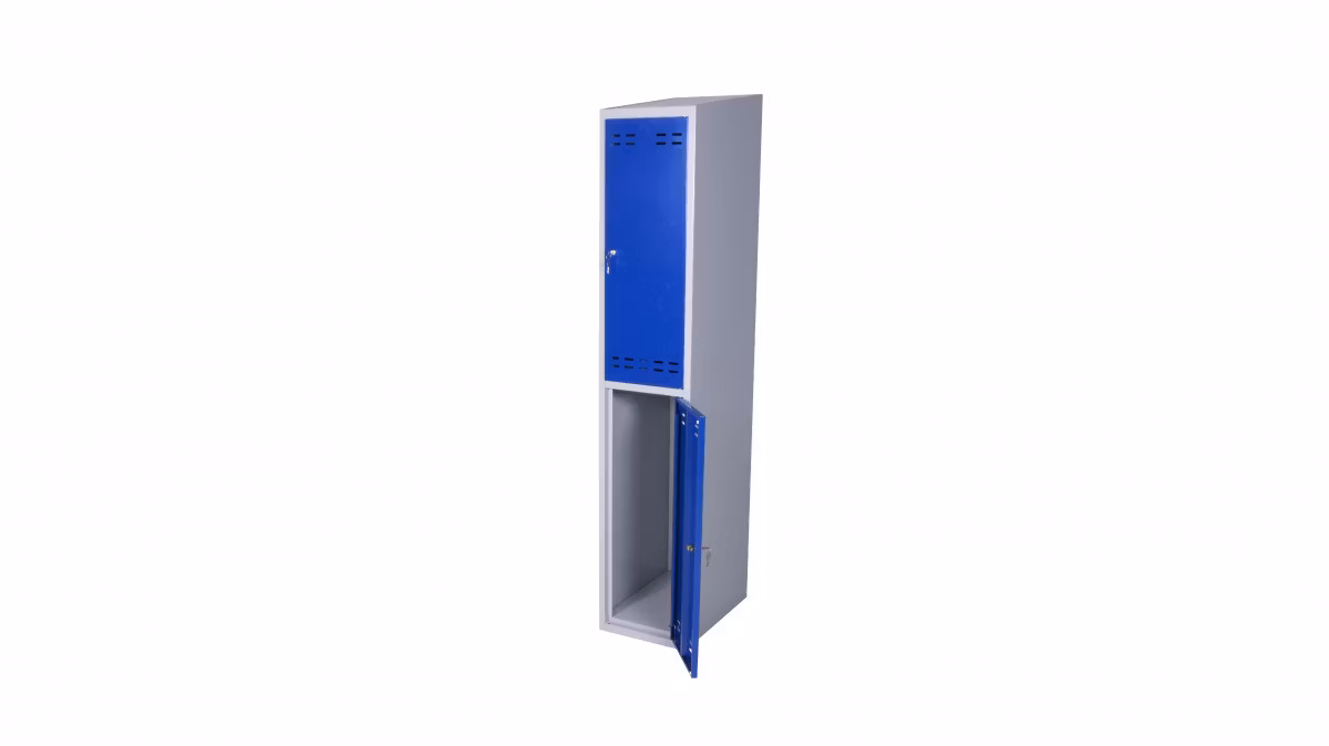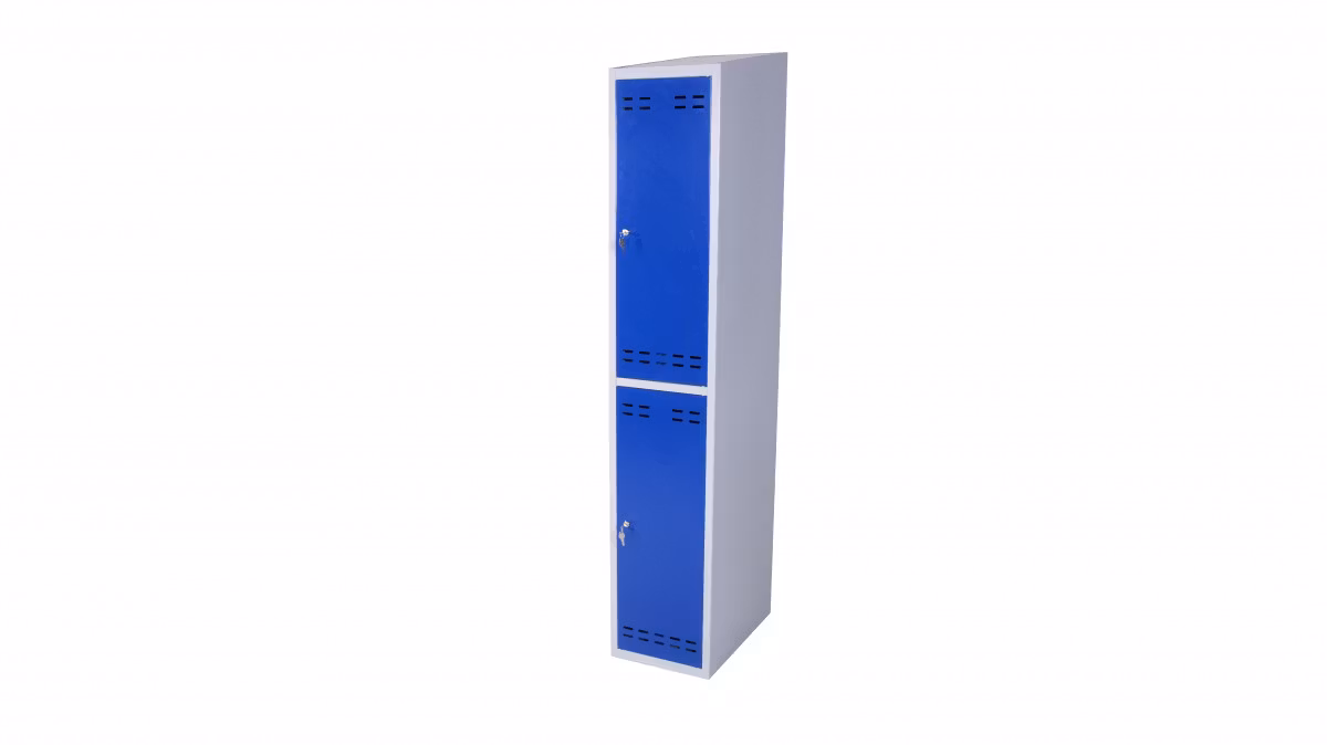 Omonterat klädskåp med två fack. Monteras enkelt utan skruvar och verktyg genom en smart konstruktion. Sluttande tak för enkel renhållning. Välventilerade med dubbla ventilationsgaller.