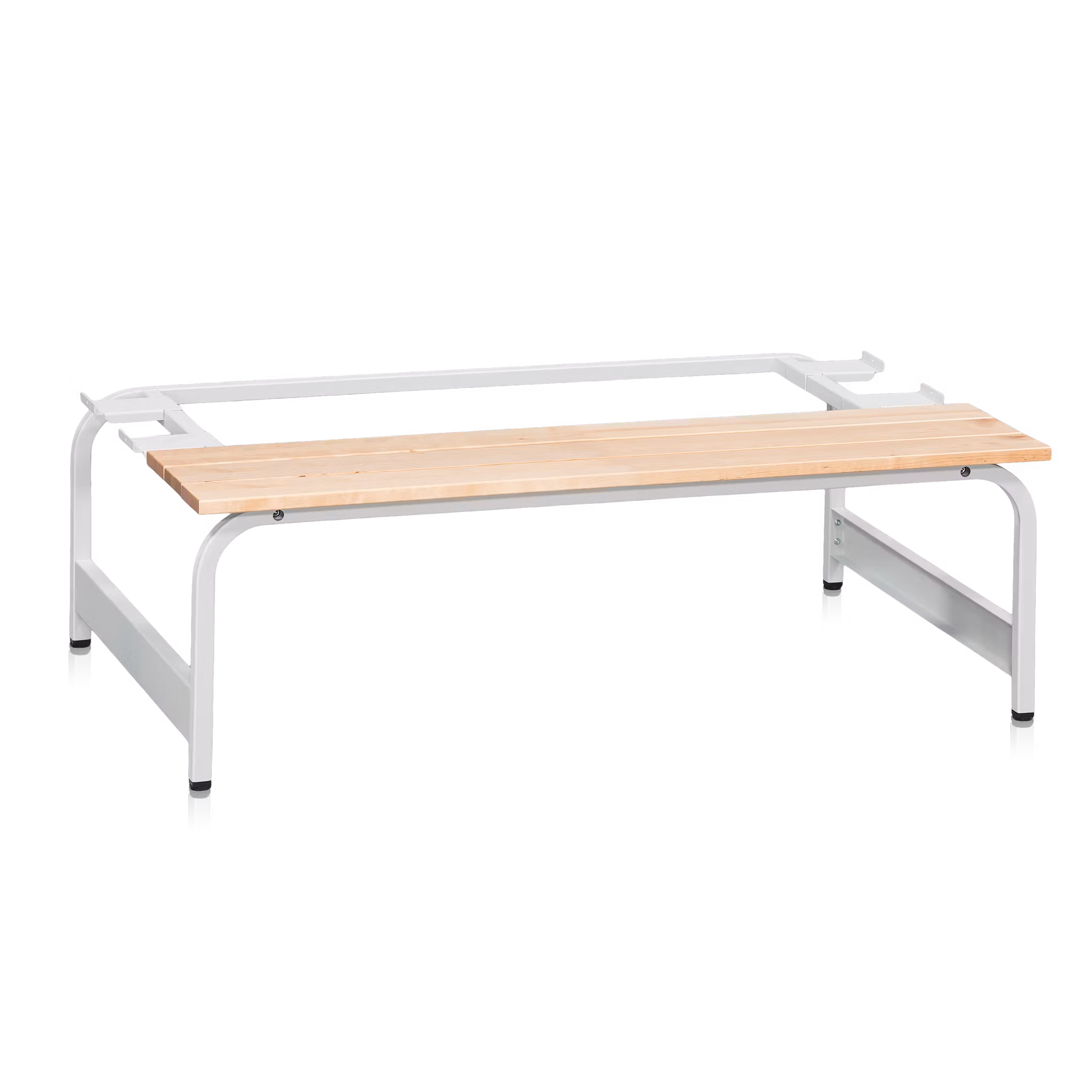 Robust bänkstativ till klädskåp med sittdel i björk.