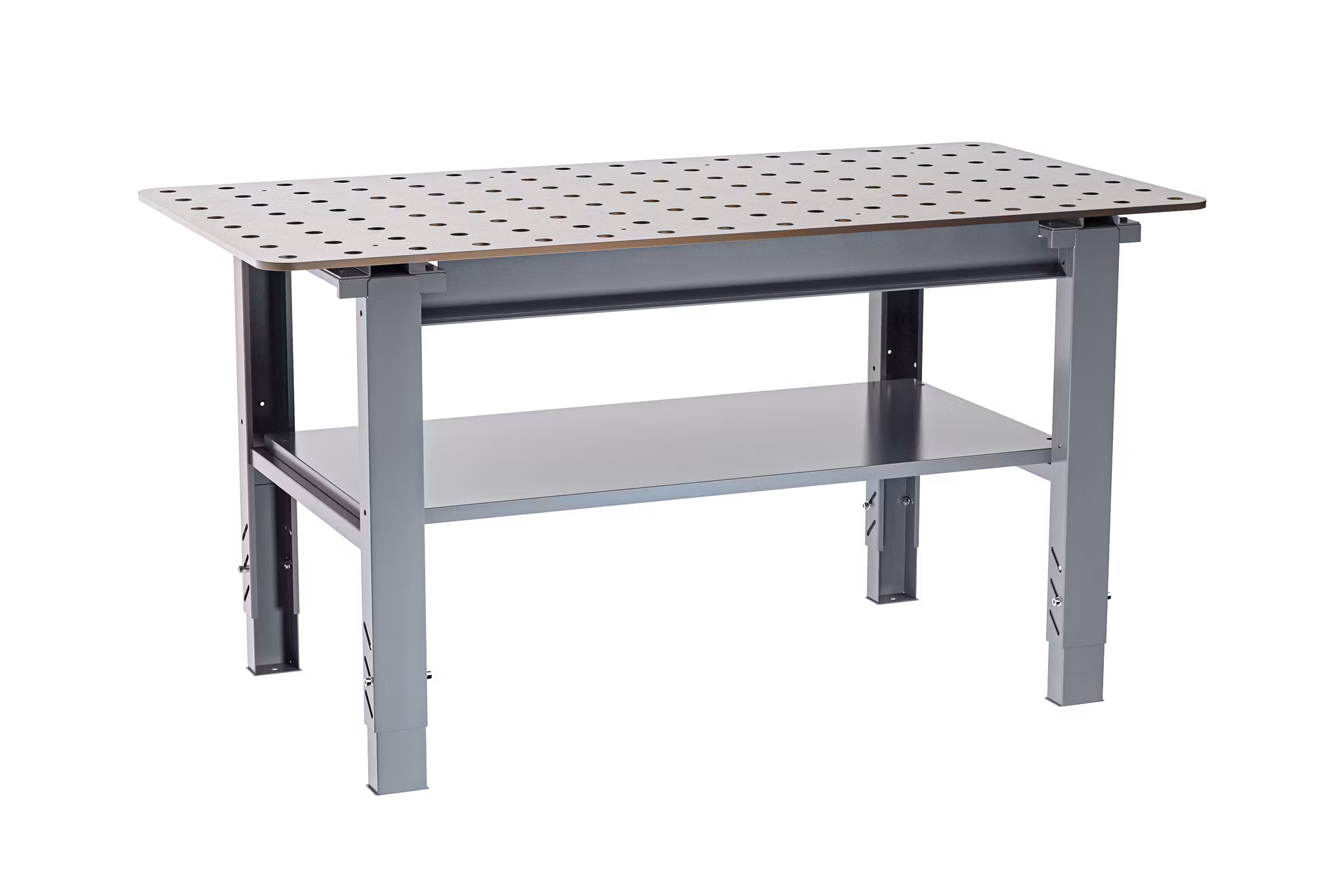 Svetsbordet går att komplettera med våra standardtillbehör som perforerade paneler och hyllplan genom montering av bordsfäste och pelare, se fler bilder för exempel. Ett perfekt alternativ för svetsarbetsplatser som är ute efter ett manuellt och stabilt svetsbord med stålskiva.