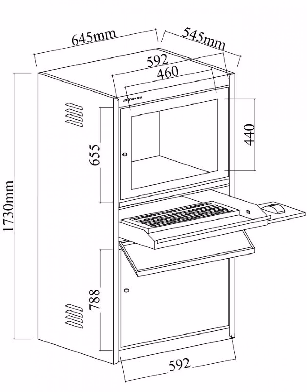 Datorskåp med självventilation. Levereras omonterat i platt paket för bästa möjliga transport, ur ekonomiskt och miljöperspektiv.