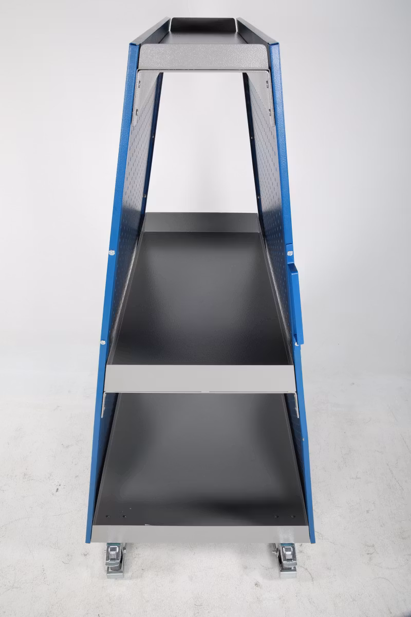 Stor och kraftig verktygsvagn för förvaring av verktyg och andra delar på din arbetsplats! Dess utformning med stora snedställda panelsidor och avställningsytor gör att den passar utmärkt i verkstäder och andra monteringskrävande miljöer.