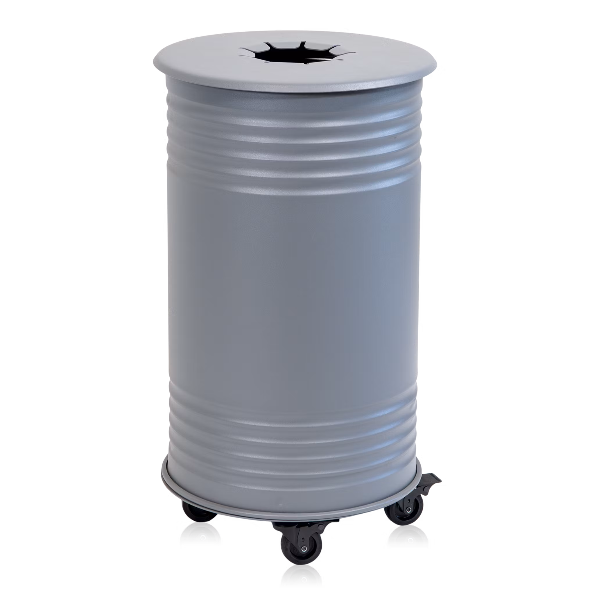 Sortera mera med vår avfallsbehållare i plåt! Tunnan är placerad på en bottenplatta med tre hjul och har en ringinsats för placering av avfallspåsen inuti avfallsbehållaren, vilket är både funktionellt för den som tömmer och skapar ett mer stilrent uttryck på arbetsplatsen.