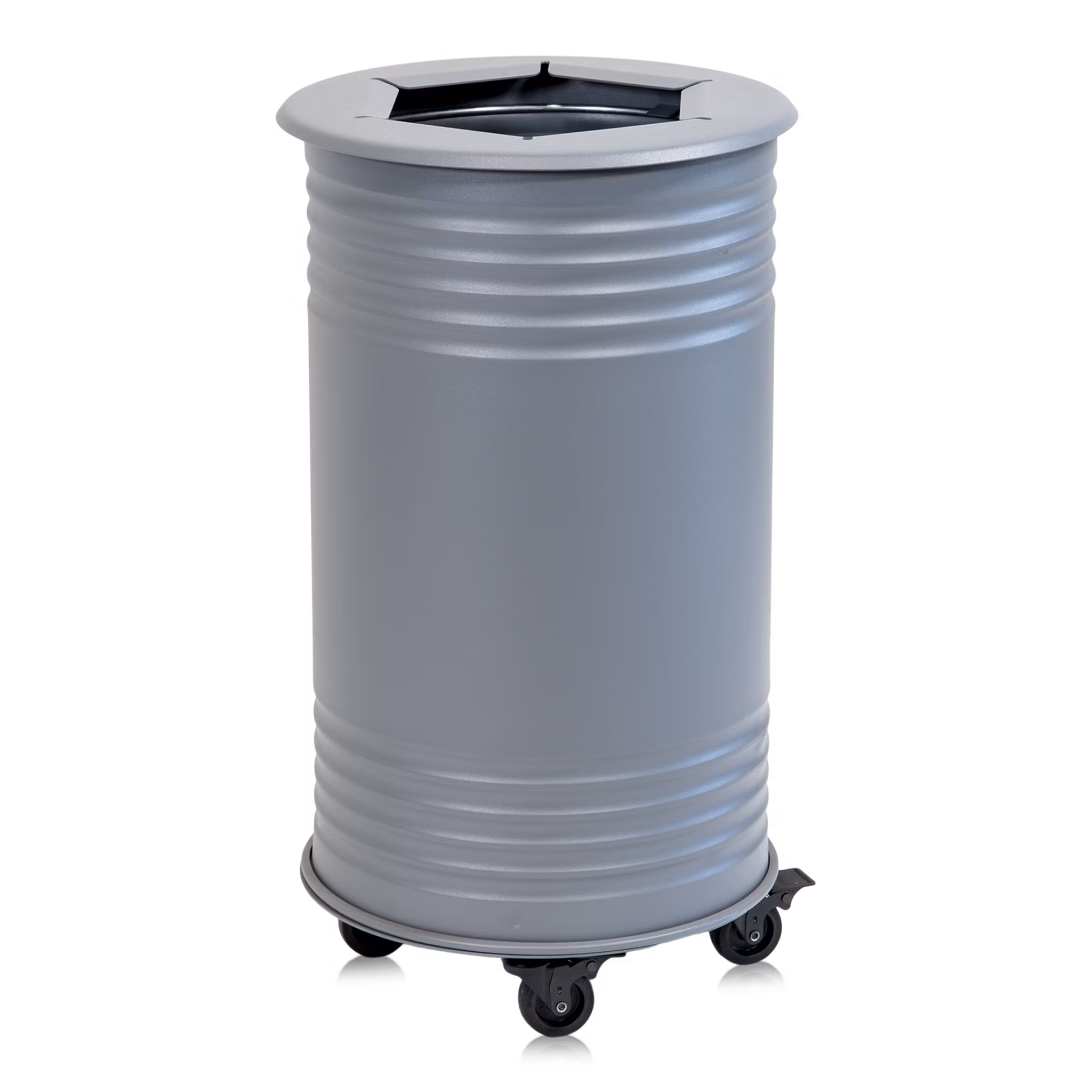 Sortera mera med vår avfallsbehållare i plåt! Tunnan är placerad på en bottenplatta med tre hjul och har en ringinsats för placering av avfallspåsen inuti avfallsbehållaren, vilket är både funktionellt för den som tömmer och skapar ett mer stilrent uttryck på arbetsplatsen.
