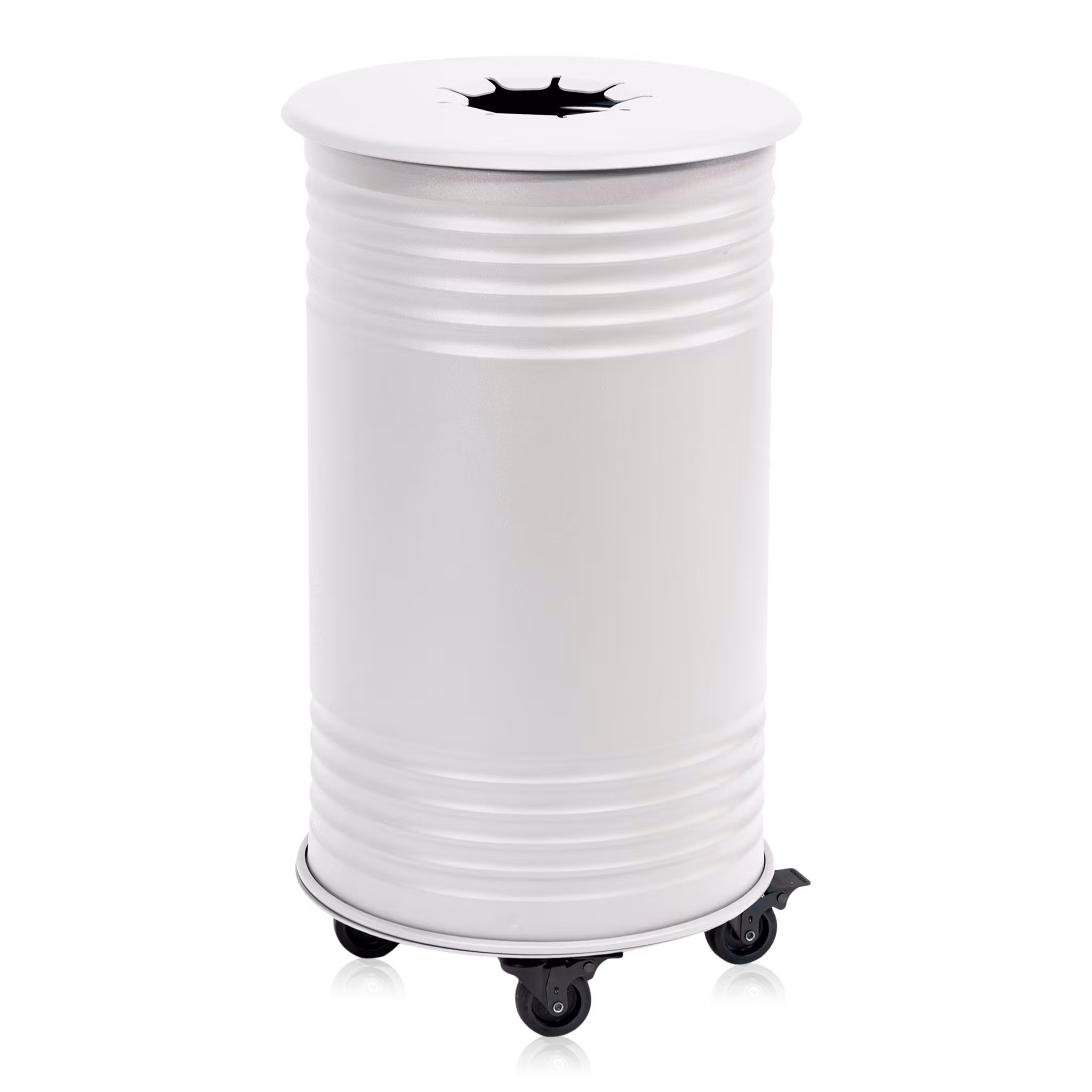 Sortera mera med vår avfallsbehållare i plåt! Tunnan är placerad på en bottenplatta med tre hjul och har en ringinsats för placering av avfallspåsen inuti avfallsbehållaren, vilket är både funktionellt för den som tömmer och skapar ett mer stilrent uttryck på arbetsplatsen.