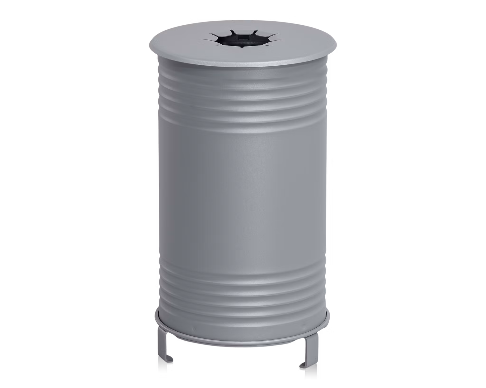 Sortera mera med vår avfallsbehållare i plåt! Tunnan är placerad på tre ben och har en ringinsats för placering av avfallspåsen inuti avfallsbehållaren, vilket är både funktionellt för den som tömmer och skapar ett mer stilrent uttryck på arbetsplatsen.