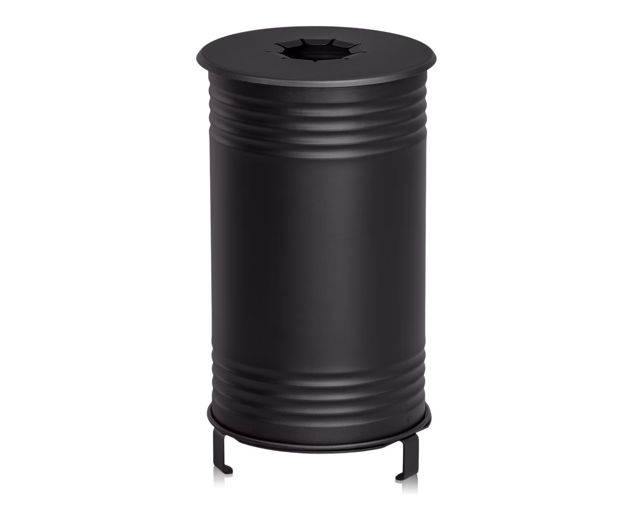 Sortera mera med vår avfallsbehållare i plåt! Tunnan är placerad på tre ben och har en ringinsats för placering av avfallspåsen inuti avfallsbehållaren, vilket är både funktionellt för den som tömmer och skapar ett mer stilrent uttryck på arbetsplatsen.