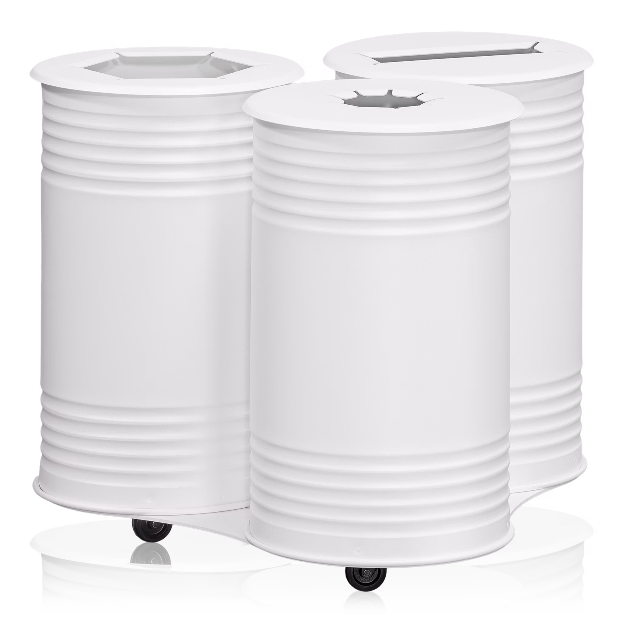 Avfallsbehållare Tin Trippel, Hjul, Vit