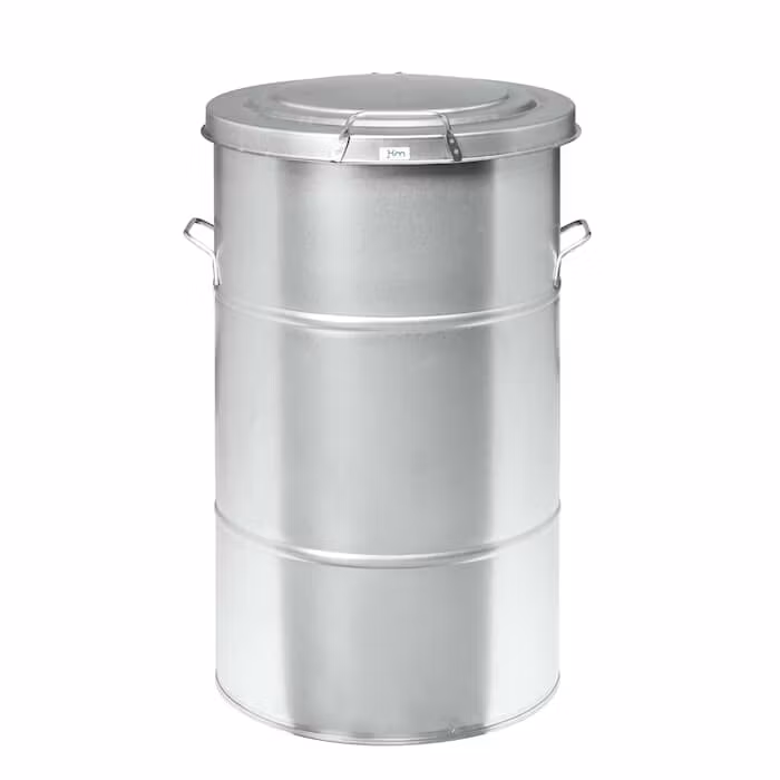 Avfallstunna. Galvaniserad plåt även på de som är pulverlackerade. Praktiska bärhandtag. Finns i olika storlekar: 30, 70, 115 och 160 liter. 4 olika färge
