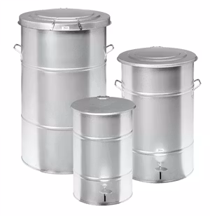 Avfallstunna med fotpedal. Galvaniserad plåt även på de som är pulverlackerade.Praktiska bärhandtag. Finns i olika storlekar: 30, 70, 115 och 160 liter. 4 olika