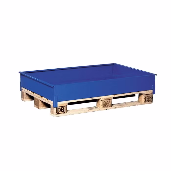 Pallbassäng för oljefat och annat miljöfarligt avfall. Tät i sin konstruktion som förhindrar vätskor att läcka ut. Anpassad för EUR-pall.