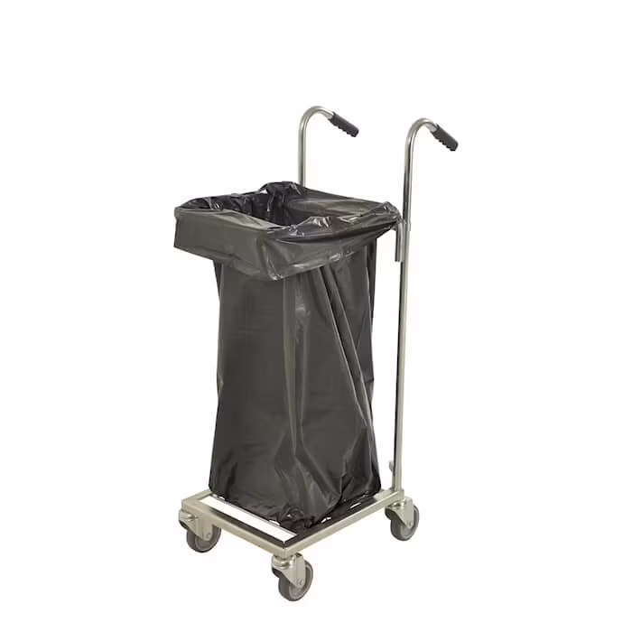 Ergonomiskt utformad sopsäcksvagn anpassad för 125L sopsäck. Fäste som håller säcken på plats.