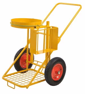 Städkärra för utomhusbruk. Gummistropp som håller säcken på plats.Avsedda hållare för skyffel och borste, samt ett fack för diverse prylar.Kraftiga 400mm luftgu