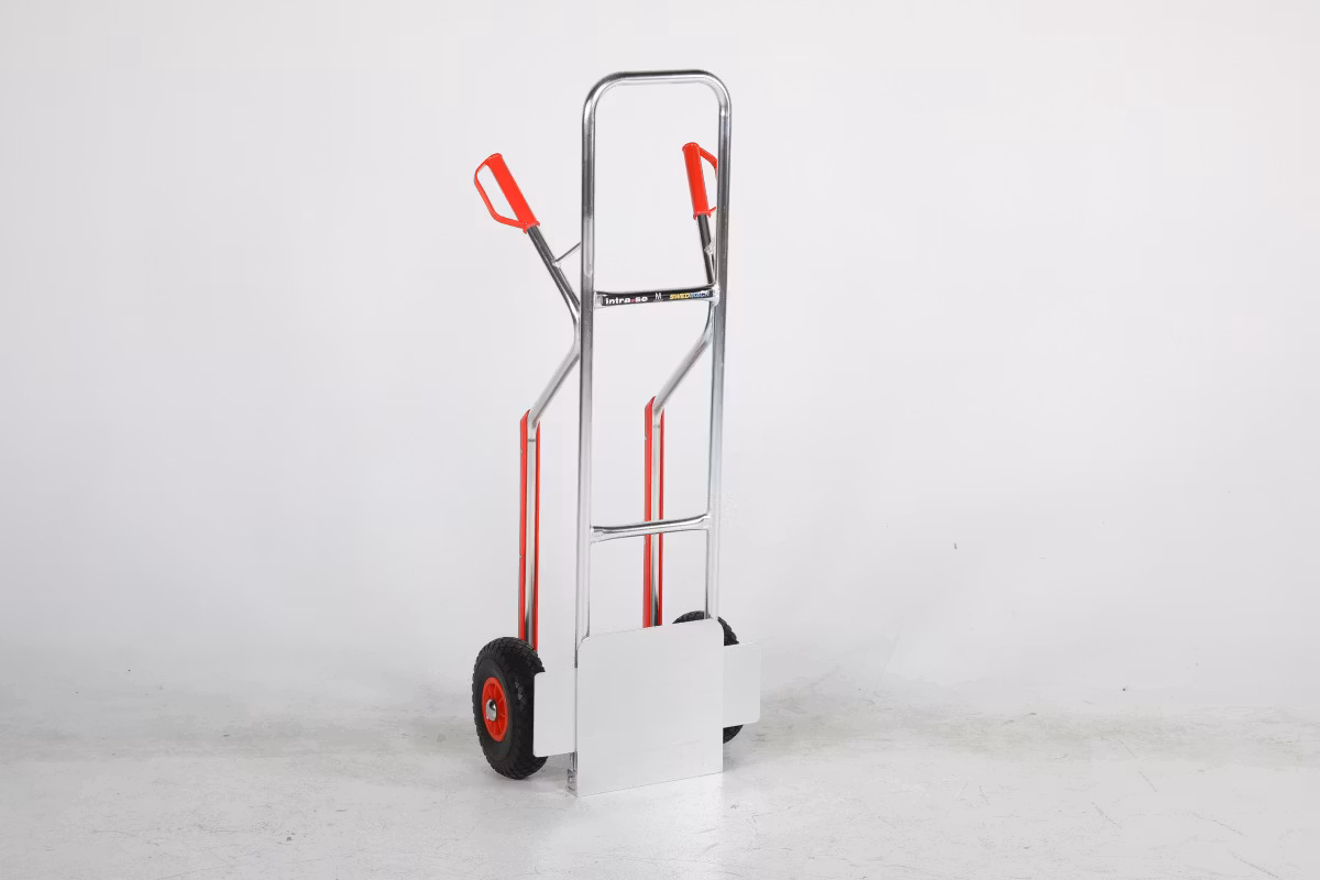 Aluminiumkärra med fällbar plattform och glidskenor för smidig hantering även i trappor. Helt enkelt en perfekt kärra för att klara vardagens arbeten och transporter.