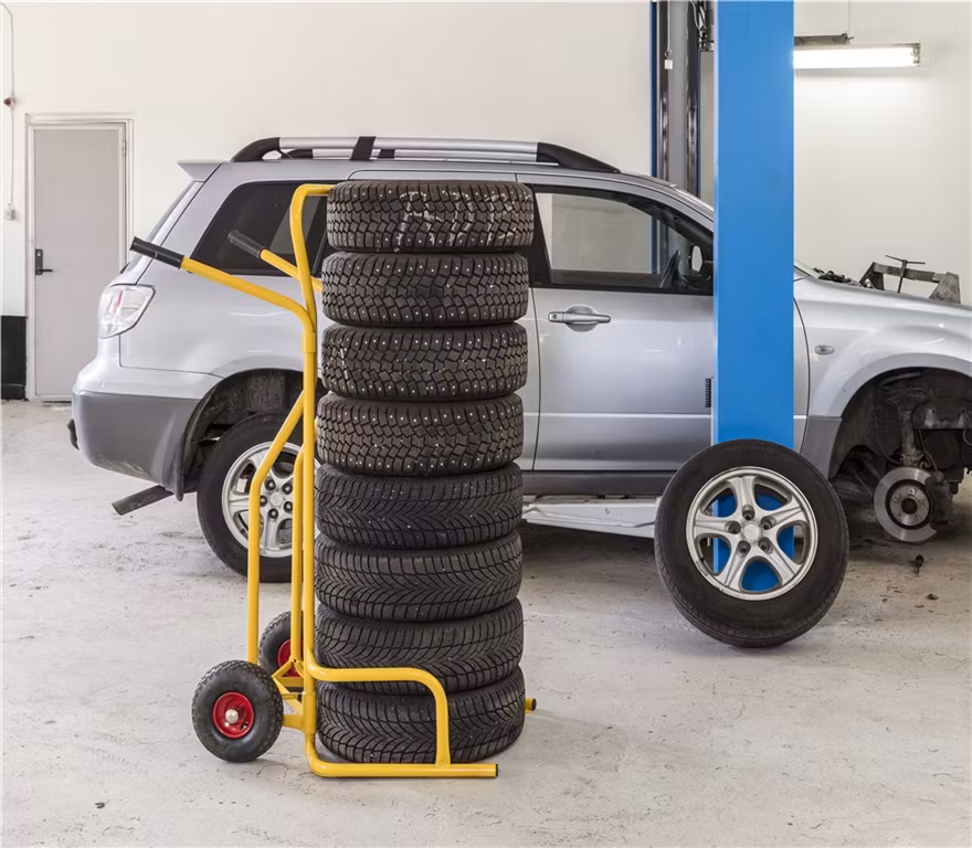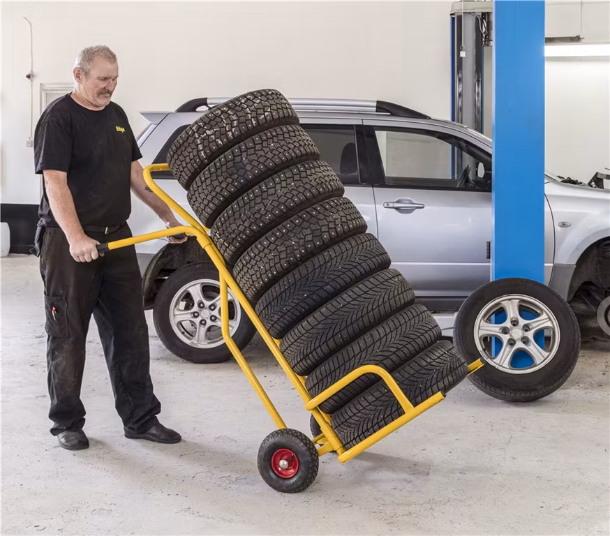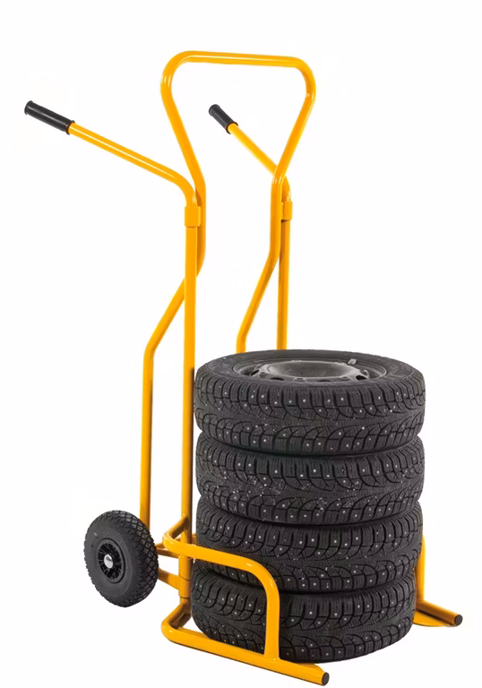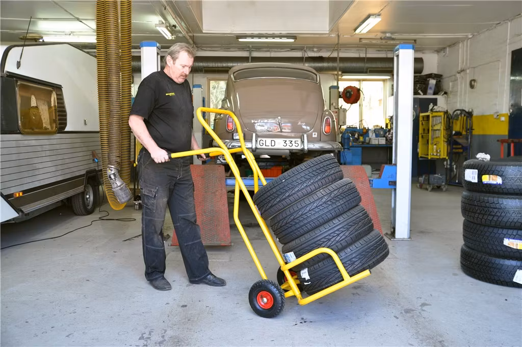 Kraftig däckkärra som hjälper dig att transportera däcken på ett otroligt enkelt sätt. Rejäla däck som gör det lätt att köra på alla underlag.