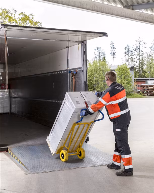 Robust kärra med punkteringsfria hjul som gör den flexibel i sina användningsområden. Ergonomiskt handtag , fällbart lastplan.