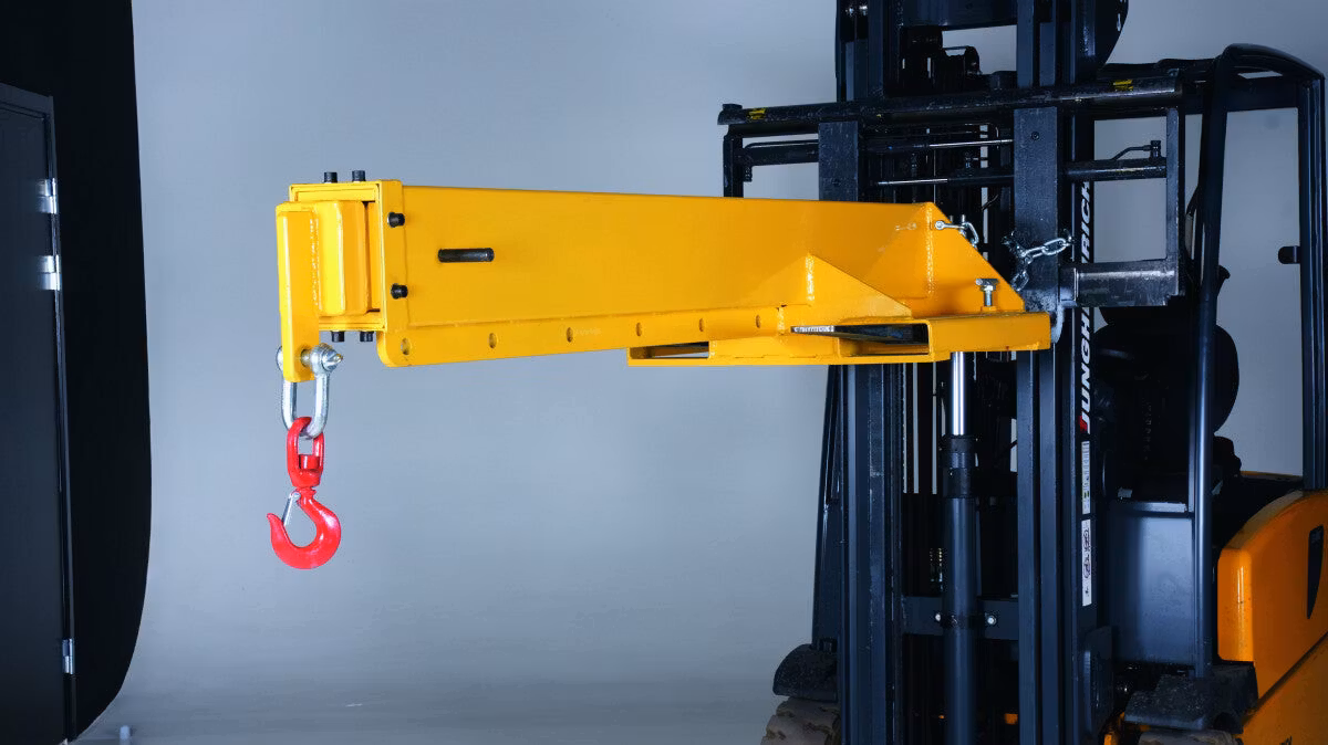 Omvandlar en gaffeltruck till mobil lyftkran på några sekunder. Utrustad med gaffellåsning samt spärrhandtag för bästa säkerhet. Kapacitet: 3000 kg