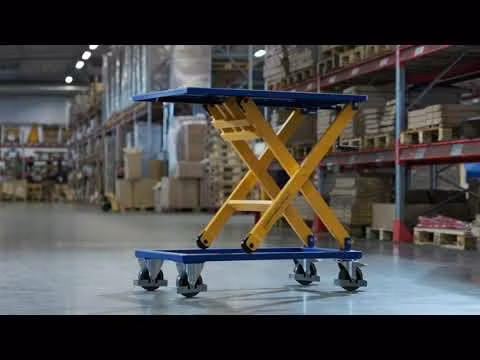 Polyuretanhjulen rullar lätt och är skonsamma mot golv, vilket gör lyftbordet väl anpassat för inomhusmiljöer.