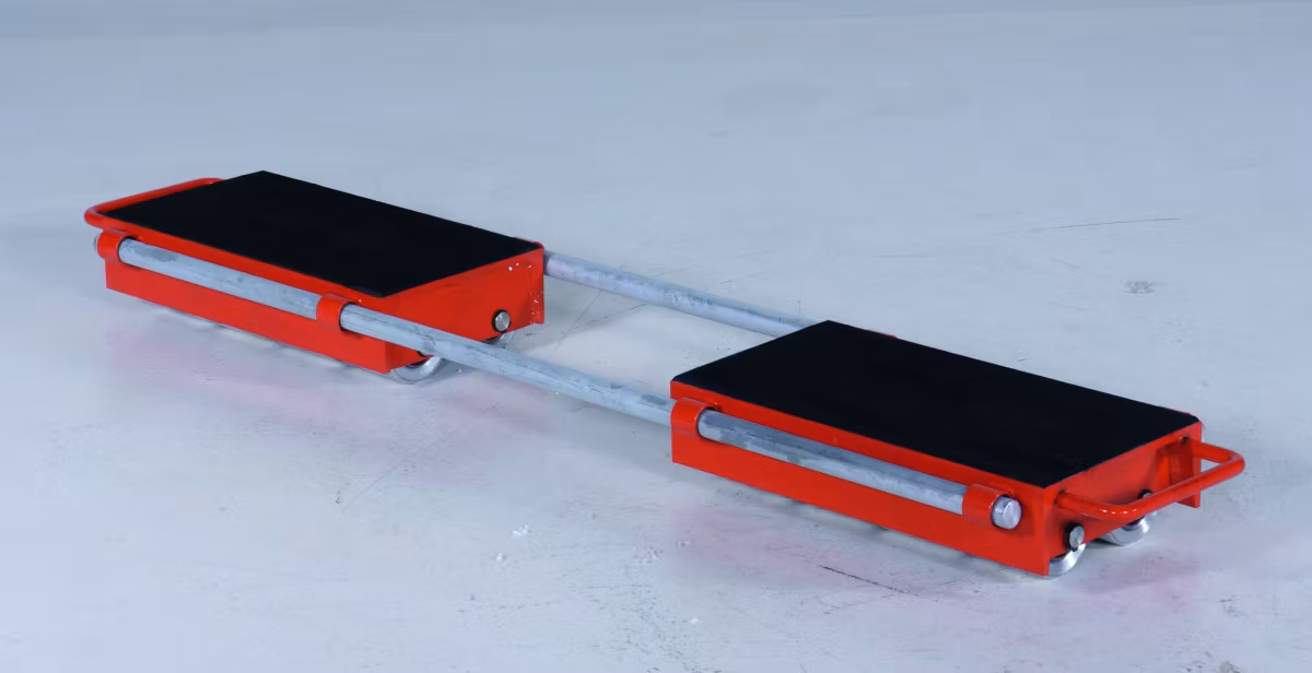 Kraftiga och flexibla maskinskridskor för tung hantering upp till 24 ton, Samtliga har gummiklädd yta för att skydda godset som transporteras. Levereras i set, där varje set består av två maskinskridskor och två stålstänger.