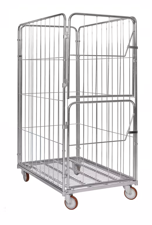 Rullcontainer med 4 sidor och 2 dörrar. Monteras med skruv för extra bra stabilitet.