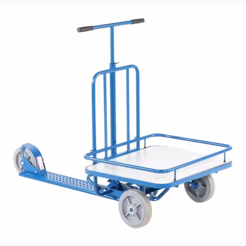 För snabba person & varutransporter inomhus. Sparkcykel med parallellstyrning och rullagrade massivgummihjul. Fotplatta med halkskydd och kraftig fotbromsanordning på bakhjulet.