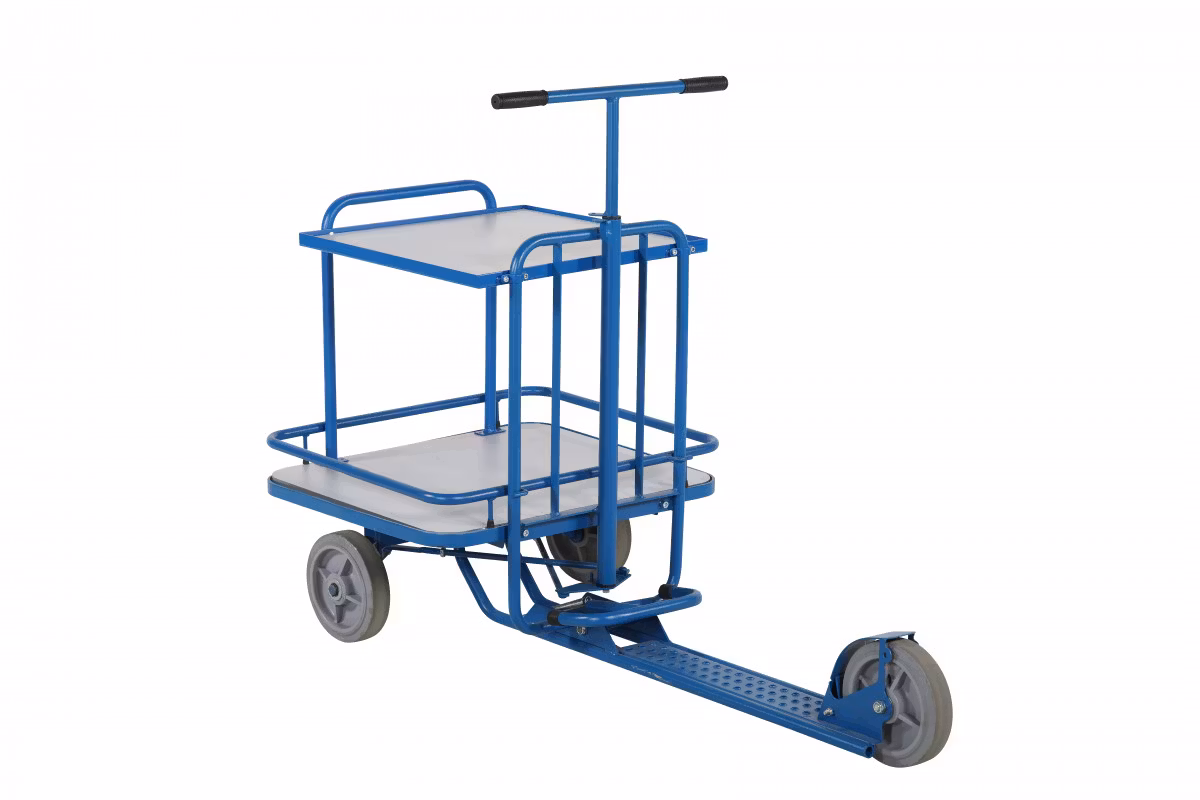 För snabba person & varutransporter inomhus. Sparkcykel med parallellstyrning och rullagrade massivgummihjul. Fotplatta med halkskydd och kraftig fotbromsanordning på bakhjulet.