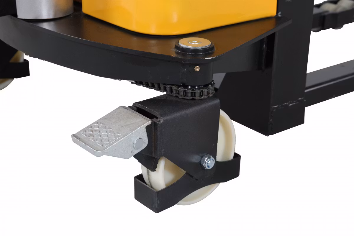 Handdragen staplare med batteridriven lyftmotor. Ergonomisk hantering för tunga frekventa lyft. Helt anpassad till sina arbetsuppgifter: I- och urlastning samt stapling av pallgods. Kan med fördel användas som höj - och sänkbart arbetsbord.