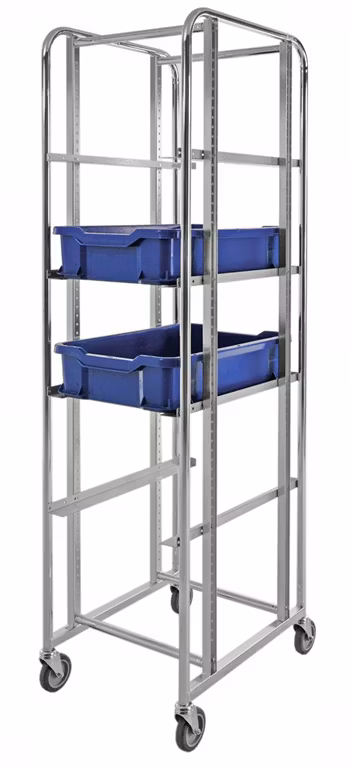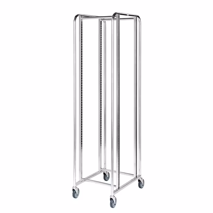 Flexibelt backställ med många möjligheter, bygg efter eget behov. Hyllor/gejder kan monteras rakt eller lutande. Anpassat för Europabackar.