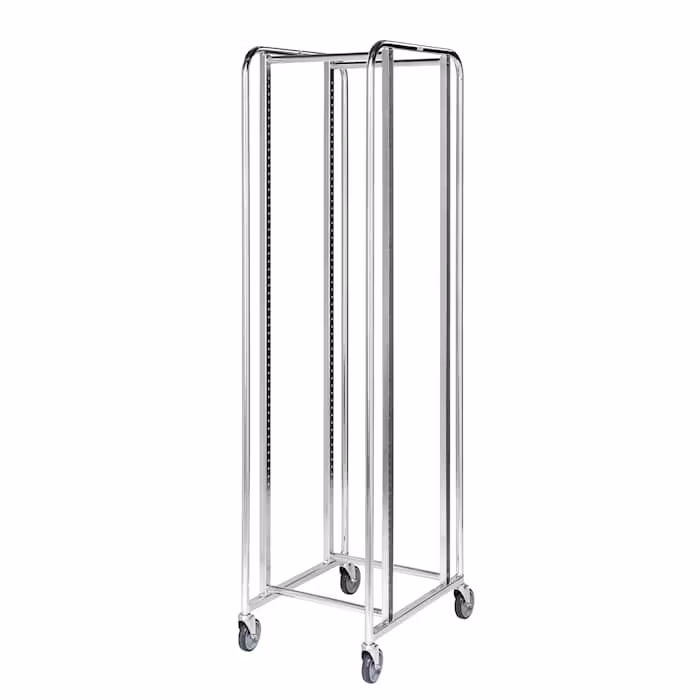 Flexibelt backställ med många möjligheter, bygg efter eget behov.Hyllor/gejder kan monteras rakt eller lutande.Anpassat för Europabackar, levereras omonterat.Te