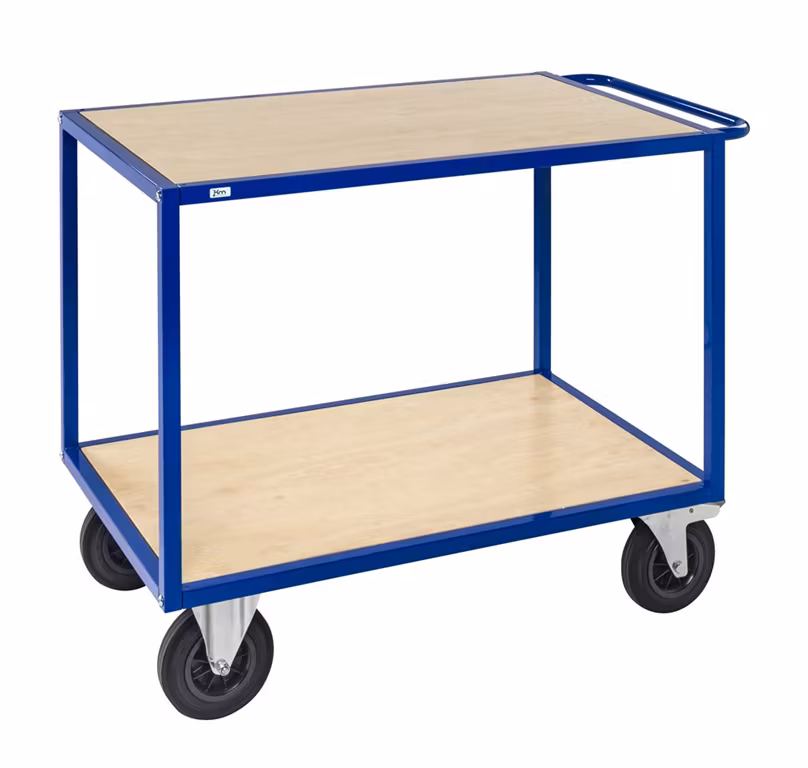 Praktisk bordsvagn. Finns i olika storlekar och med eller utan broms. Serien innehåller plattformsvagn, bordsvagn, etagevagn, gavelvagn, lådvagn och skivvagn.