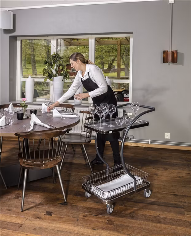 2 hyllplan. Höjd till första hyllplanet: 160 mm. Avstånd mellan hyllplan: 630 mm. Maxlast hyllplan: 80 kg. Hjul: 4 länk. Hjuldiameter: 100 mm.
