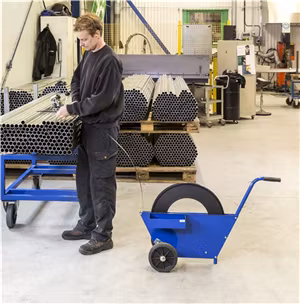 Klassisk bandvagga till stålband, 16-19mm. Praktiskt fack för bandverktyg.