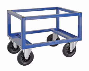 Pulverlackerad. Anpassad för halvpall 800 x 600 mm. Hjul: 2 fast 2 länk med broms. Hjuldiameter: 200 mm.