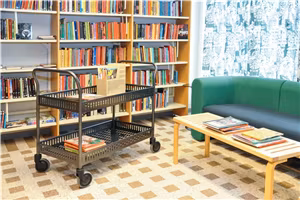 Hög sarg på 90 mm. 2 hyllplan. Avstånd mellan hyllplan: 325 mm. Hjul: 4 länk. Hjuldiameter: 125 mm.