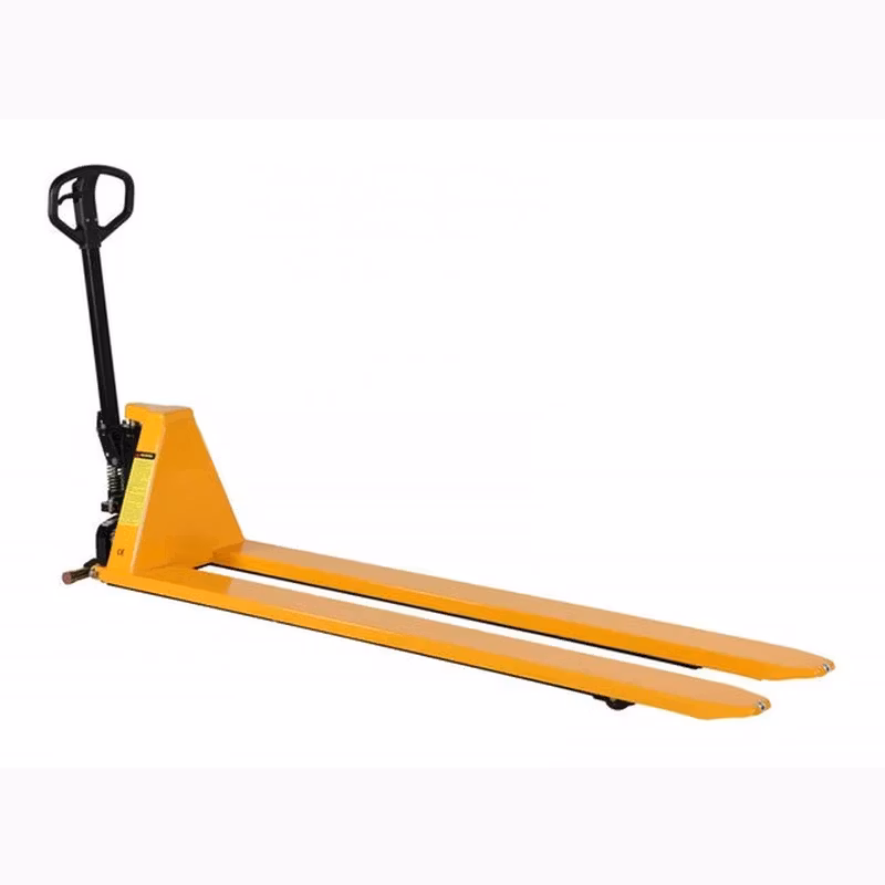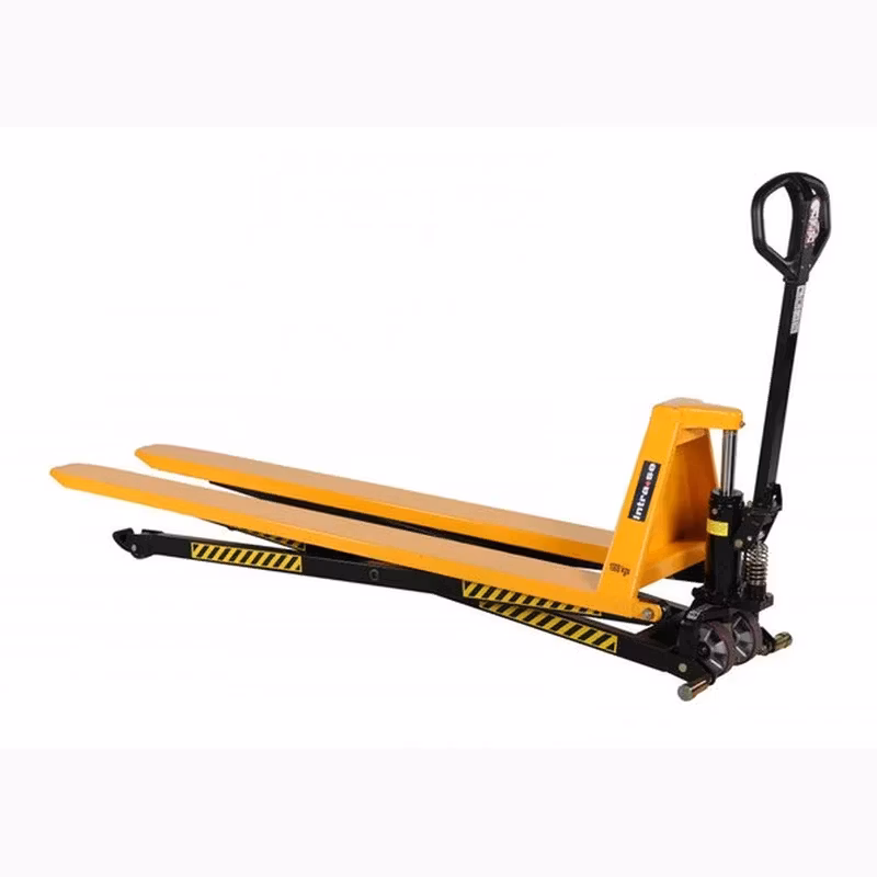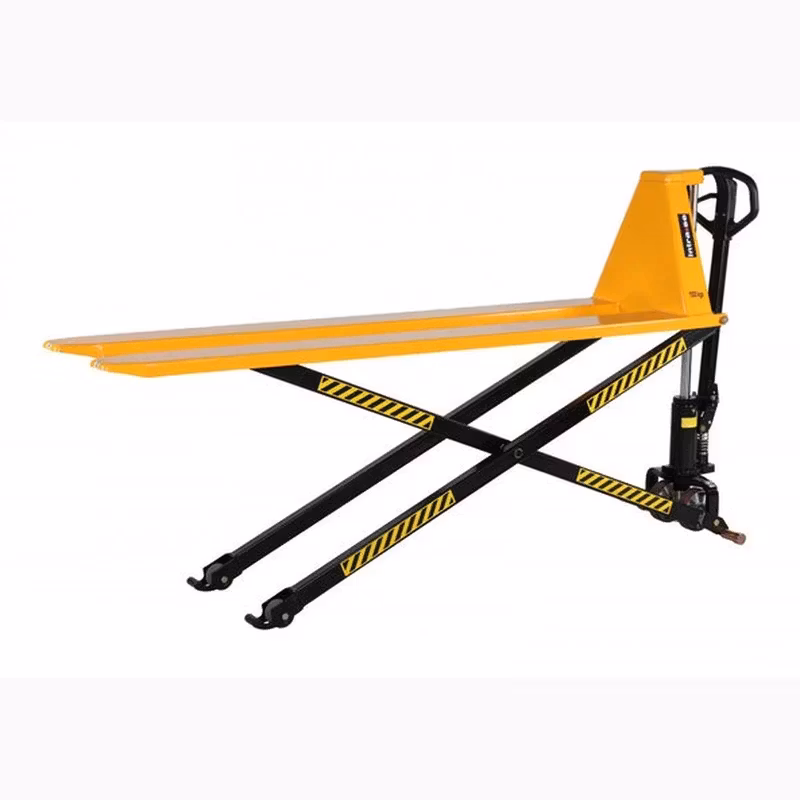 Manuell saxlyftvagn med teleskopcylinder. Automatisk snabblyft ger 38 mm lyft per pumpslag för laster upp till 150 kg. För laster över 150 kg ger ett pumpslag 20 mm lyft.
