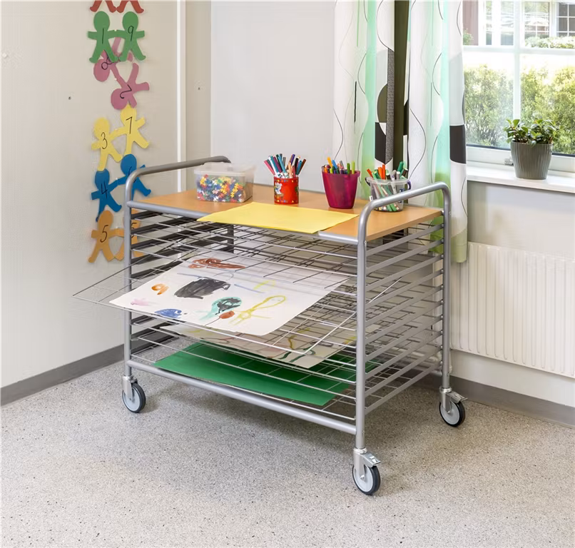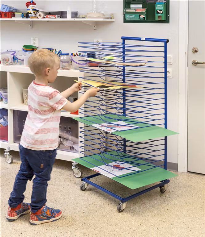 Torkvagn som finns i 3 modeller. Utdragbara näthyllplan som är perfekta till att torka ex. barnens konstverk i vattenfärg.