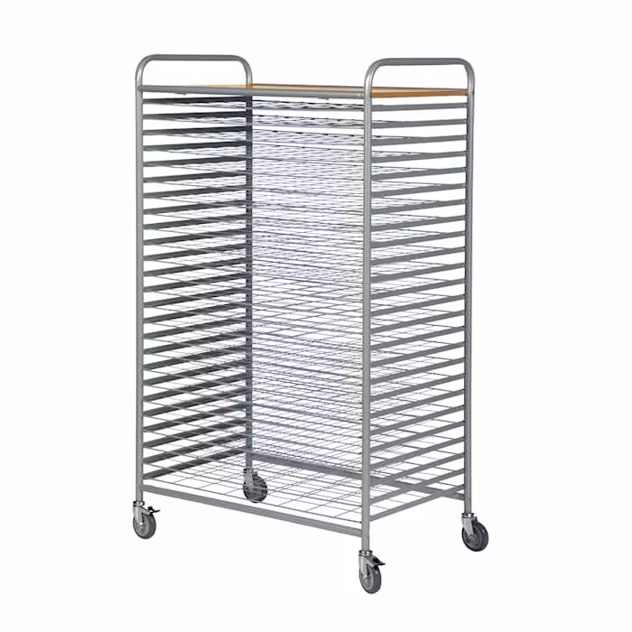 Torkvagn som finns i 3 modeller. Utdragbara näthyllplan som är perfekta till att torka ex. barnens konstverk i vattenfärg.