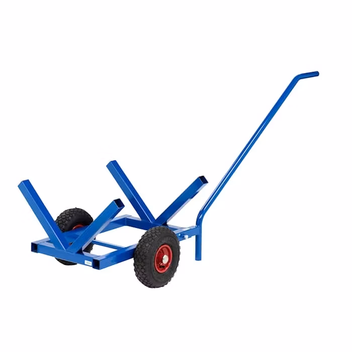Kärra anpassad för långgods. Med handtaget monterat vid sidan så är det gott om plats för även de större rören.