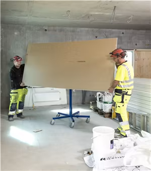 Skivhiss med tiltfunktion för uppsättning av skivmaterial i raka eller lutande tak. Stabil och robust konstruktion som gör jobbet enkelt och säkert på alla un