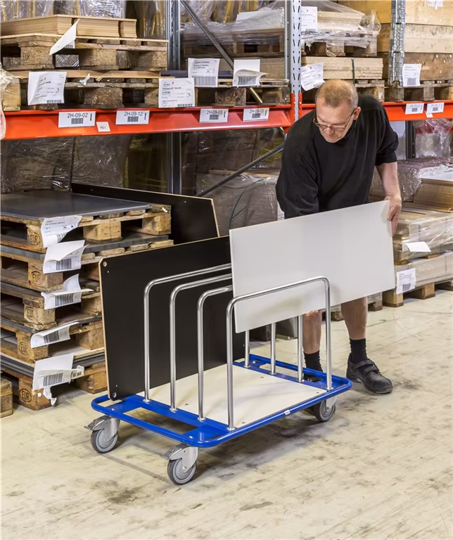 Enkel och smidig skivvagn för det lättare godset. Tålig skiva av laminat. Levereras omonterad. Se även skivvagnar KM539 och KM439. som standard i 2 modeller. Levereras omonterad.